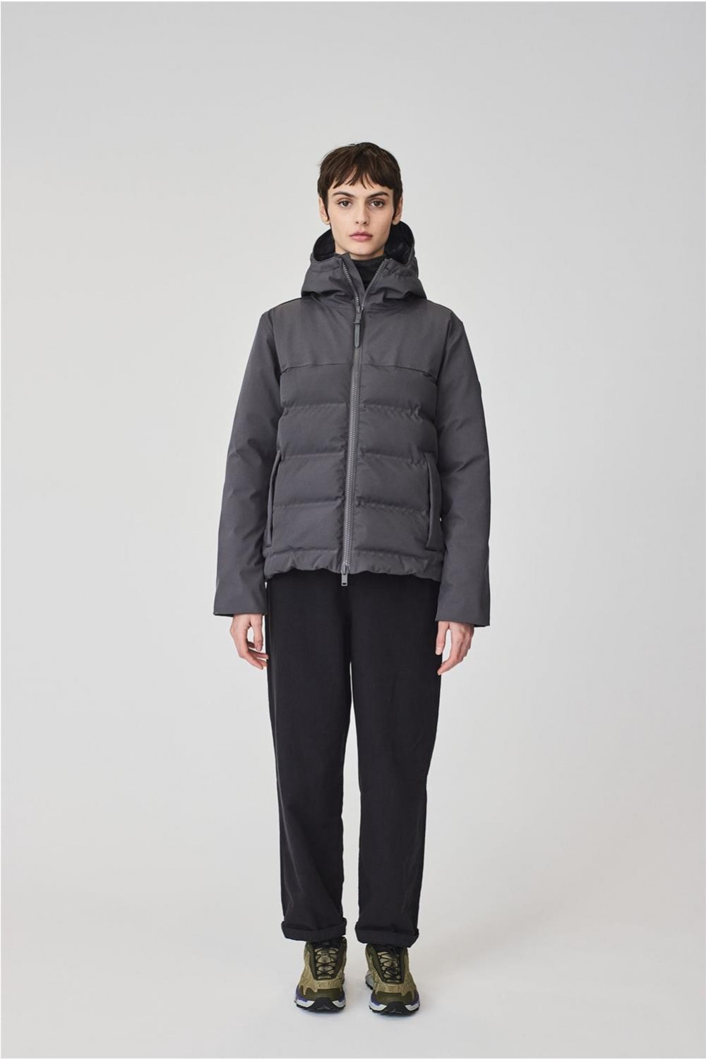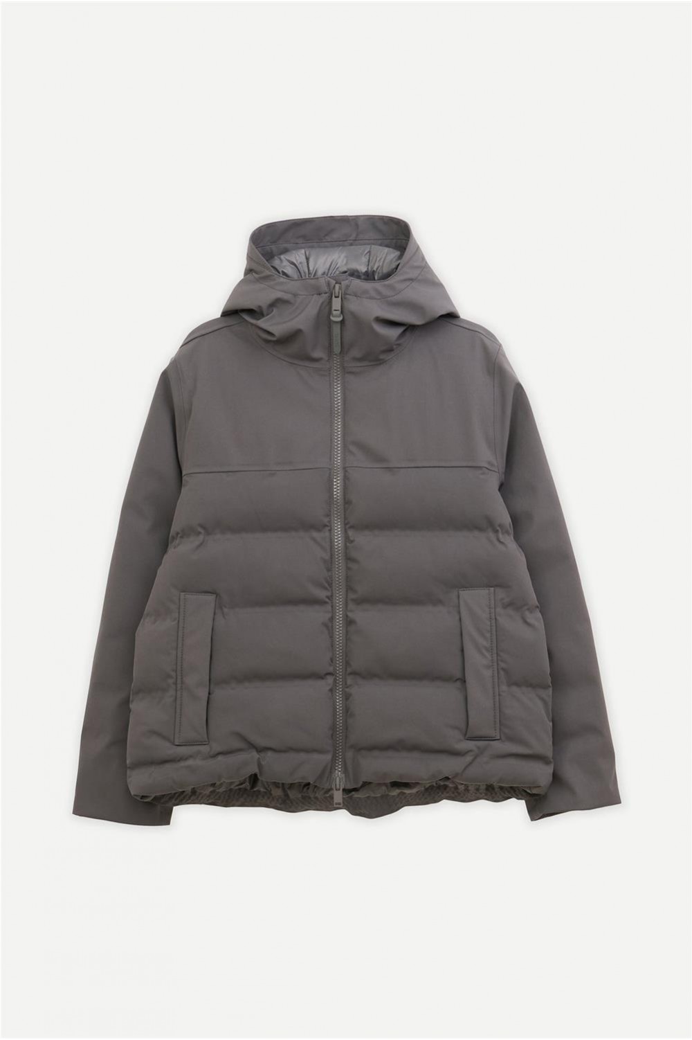 Plumífero Tanta en tejido Softshell impermeable y acolchado con aislamiento ligero, transpirable, sin plumas y corte evasé. Sus costuras completamente selladas garantizan una protección total contra el agua, mientras que las mangas, capucha y los paneles superiores delanteros y traseros en tejido liso aportan un elegante contraste. El diseño se remata con una cremallera frontal impermeable de doble cursor y detalles en tonos a juego para un acabado pulido y moderno.